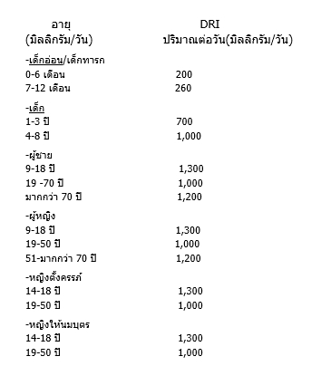 หมายเหตุ: Dietary Reference Intakes (DRIs) คือ ค่าปริมาณสารอาหารที่ควรได้รับในแต่ละวัน