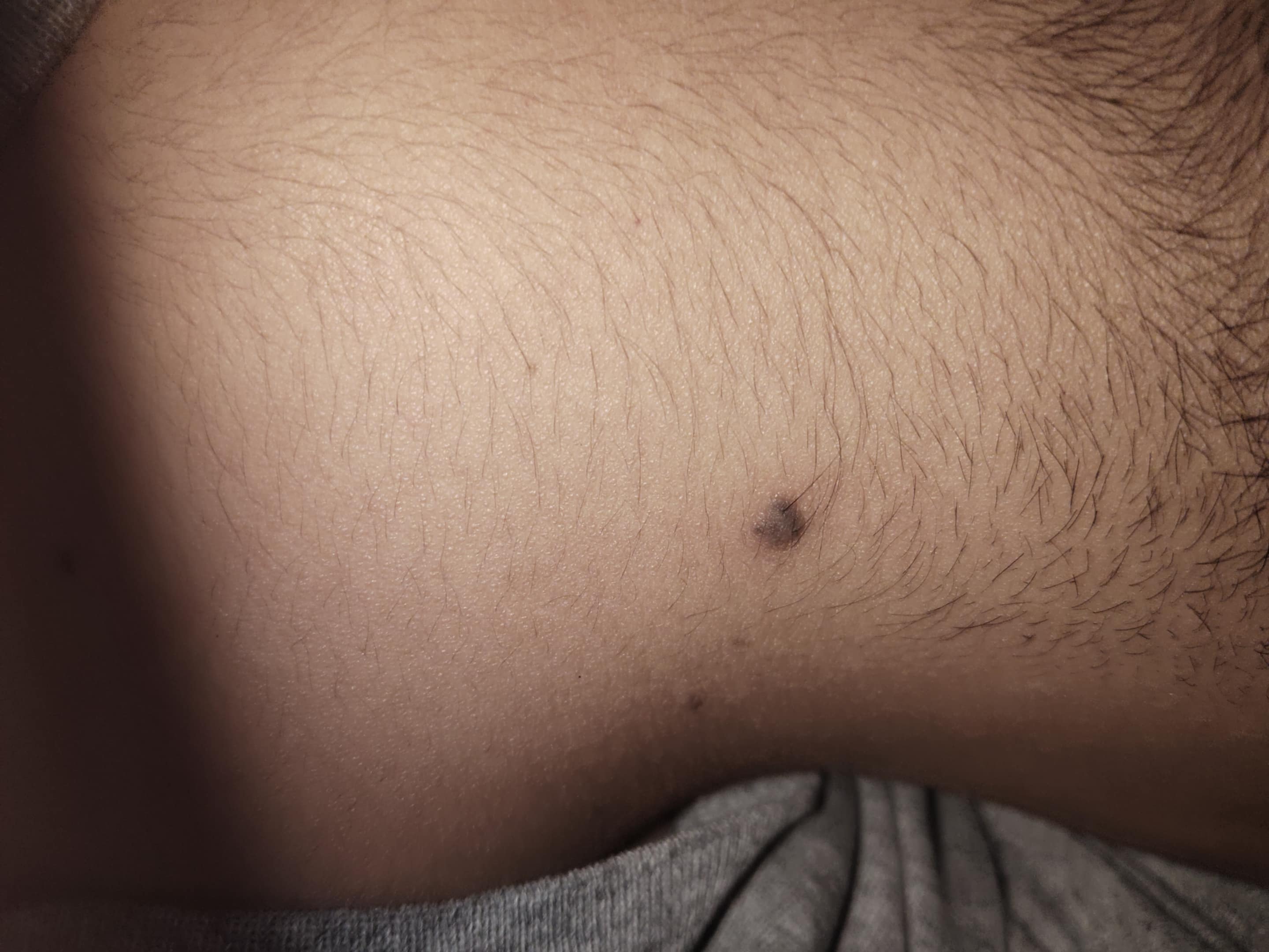 จากรูป เห็นเป็นผื่นสีคล้ำๆขนาดเล็กเรียกว่าไฝหรือขี้แมลงวัน เกิดจากเซลล์สร้างเม็ดสีของร่างกายมีการรวมตัวในบริเวณเดียวกันจนเห็นเป็นสีเข้ม อาจเป็นสีน้ำตาลหรือดำ และอาจมีลักษณะเรียบหรือนูน การเกิดของไฝมีทั้งที่เป็นมาตั้งแต่แรกเกิด หรือเกิดในภายหลัง โดยอาจจะมีการเปลี่ยนแปลงได้ ทั้งมีสีเข้มขึ้นหรืออ่อนลง เม็ดใหญ่ขึ้นหรือจางหายไปก็ได้ โดยทั่วไปมักไม่มีอันตราย ยกเว้นในกรณีดังต่อไปนี้