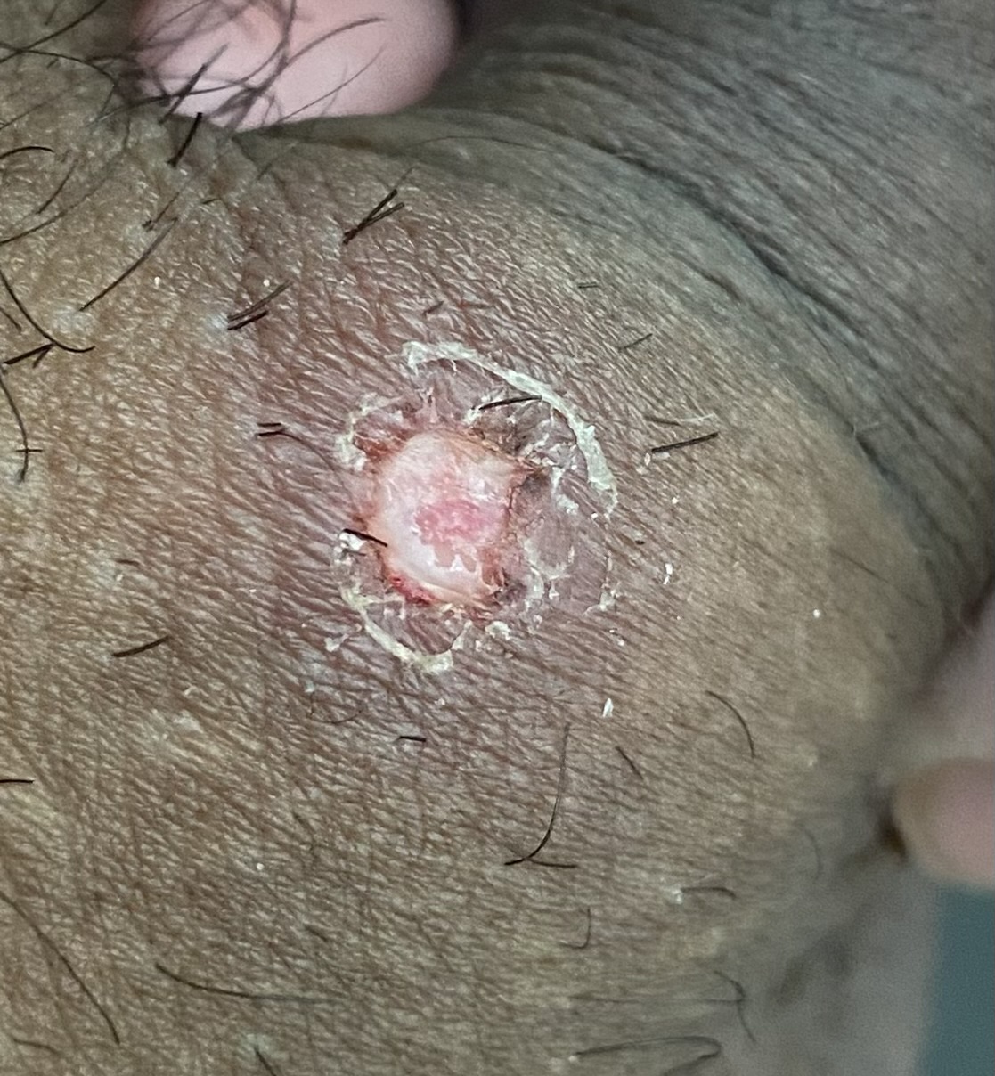 8 ตุลาคม 2568 10:18:44 #1 ขออนุญาตสอบถามแผลนี้ครับ ก่อนหน้านี้โกนขนโดยใช้มีดโกน ผ่านไปสัก 3-5 วัน มีตุ่มคล้ายเม็ดสิว มีหนองสีขาวขึ้น เลยเข้าใจว่าขนคุดเหมือนทุกครั้ง จึงพยายามบีบหนองออก ผ่านไป 2-3 วัน แผลก็เป็นเหมือนรูปนี้ (แต่ถ้าตุ่มหนองไหนไม่ได้บีบมันหลุดเองก็จะไม่เป็นแผลครับ) https://haamor.com/media/create_topic/20251008101117.jpeg เพิ่มเติมข้อมูลครับ มีอาการเจ็บที่แผลและแสบเมื่อโดนน้ำ สามารถทายาหรือกินยาอะไรช่วยได้ไหมครับ