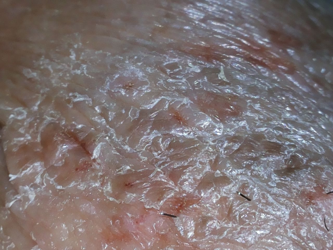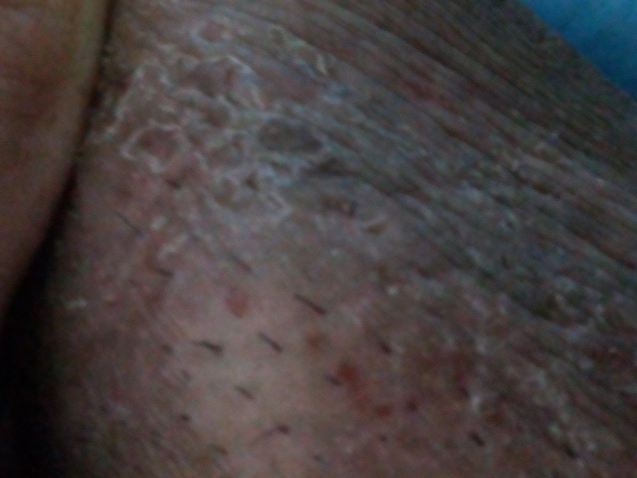 | ถุงอัณฑะลอก เป็นแผ่นขาวขุ่ยๆคันแสบ | |