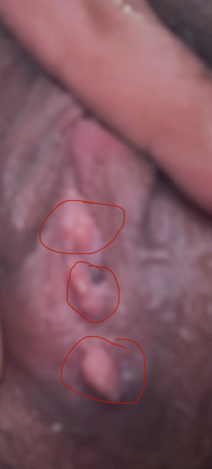 อายุ 19 จะ 20 ค่ะ มีก้อนเนื้อ เป็นติ่งออกมาจากช่องคลอด ตอนแรกเป็นแค่ 1 จุด ตรงติ่งเนื้อก้อนแรกที่พบ มีลักษณะนิ่มๆ เมื่อเขี่ยดูกางออกได้แยกกันได้เป็นเเฉกๆ ปัจจุบันเริ่มระคายเคืองและตอนนั่งมีความรู้สึกเจ็บฝีเย็บ  และมีตกขาวที่มาก แต่ปกติก็มีตกขาวมากอยู่เเล้วค่ะเป็นน้ำใสผสมขุ่นๆ ในรูปที่ 3-4 เริ่มมีในช่องคลอดเพิ่มอีก (เป็นวันที่ 9 แล้ว) วันที่ 1 ไม่เจ็บหรือคันหรือรู้สึกอะไร เลยซื้อยาเภสัช C****n กับ N***n กินครบก็ยังไม่หายหรือมีอะไรเปลี่ยนแปลง  วันที่เป็นวันแรกจนถึงวันที่ 5ปกติไม่มีอาการอะไรเช่นคัน จนวันที่ 7-8 มี Bartholin’s cyst เปิดข้างซ้าย เริ่มระคายเคืองที่อวัยวะเพศ จนวันที่ 9 รู้สึกเริ่มคันในช่องคลอดพบว่ามีเม็ดในช่องคลอดขึ้นมา เคยมีเพศสัมพันธ์ค่ะ **เป็นอะไรไหมคะ จะหายเองได้ไหมคะ ต้องทำยังไงดีคะเป็นกังวลไม่เคยเป็นค่ะ
