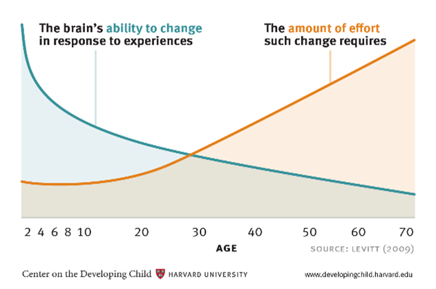 - Center on the Developing Child, Harvard University, ‘Key Concepts: Brain architecture’ accessed 2 March 2018. This source indicates that there are more than 1 million new neural connections for each second in the early years of a child’s life
