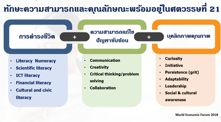 3.2 การดำเนินการให้เกิด ต้นทุนคุณลักษณะพร้อมอยู่ในศตวรรษที่ 21 เด็กที่เกิดน้อยในยุคนี้จำเป็นต้องได้รับการเลี้ยงดูเพื่อนำสู่เป้าหมาย ทั้งการมีสุขภาวะที่ดี และมีคุณลักษณะ ทักษะ พร้อมอยู่ในศตวรรษที่ 21 ซึ่งหมายถึง ทักษะความสามารถในการดำรงชีวิต ในการแก้ไขปัญหาซับซ้อน และมีบุคลิกภาพคุณภาพ ตามภาพประกอบ เป็นคุณลักษณะที่จะทำให้เด็กเมื่อเติบโตขึ้น มีต้นทุนคุณลักษณะเพื่อนำไปพัฒนาทักษะต่างๆในการแก้ไขปัญหา ที่มาจากการเปลี่ยนแปลงอย่างรวดเร็วรุนแรง เมื่อเด็กโตขึ้น เช่น เทคโนโลยี่ AI ทำให้อาชีพที่คุ้นชิน หายไป เด็กจะมีคุณลักษณะที่จะพาตัวเองเรียนรู้และปรับทักษะตัวเองให้ประกอบอาชีพใหม่ หรือคิดอาชีพใหม่ได้ เช่น อาชีพเกี่ยวกับรถทีใช้น้ำมันจะลดลง เปลี่ยนมาใช้พลังงานสะอาด สมัยก่อนอาจช้าๆ ยุคนี้ จะ เป็นไปอย่างปุบปับ ฯลฯ เป็นเรื่องไม่ไกลตัว การเลี้ยงดูต้องปูทางเตรียมสมองให้พร้อม