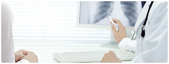 - การตวจภาพปอดด้วยเอกซเรย์คอมพิวเตอร์ (ซีทีสแกน) หรือเอมอาร์ไอ
