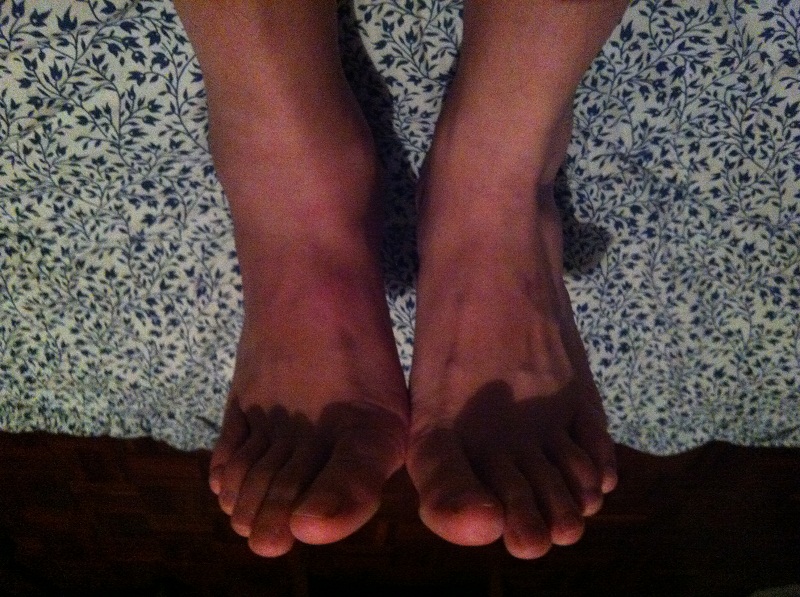 ซึ่งในตอนแรกที่ข้อเท้าพลิก เกิดอาการบวมขึ้นทันที จนล้นออกนอก รองเท้าบอล