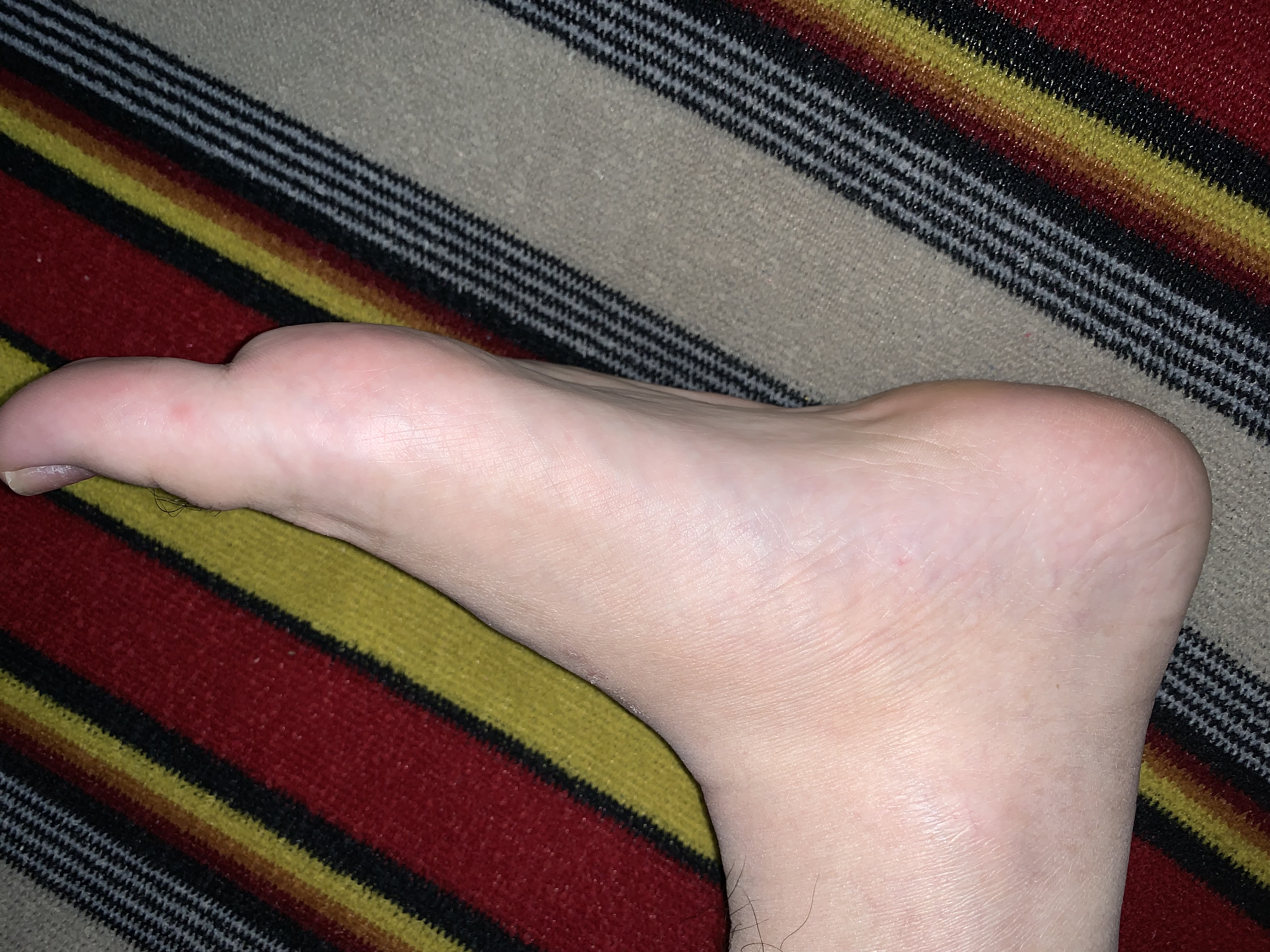 | ฝ่าเท้าบวมนูนบริเวณเดียวกันทั้งสองข้าง | |
