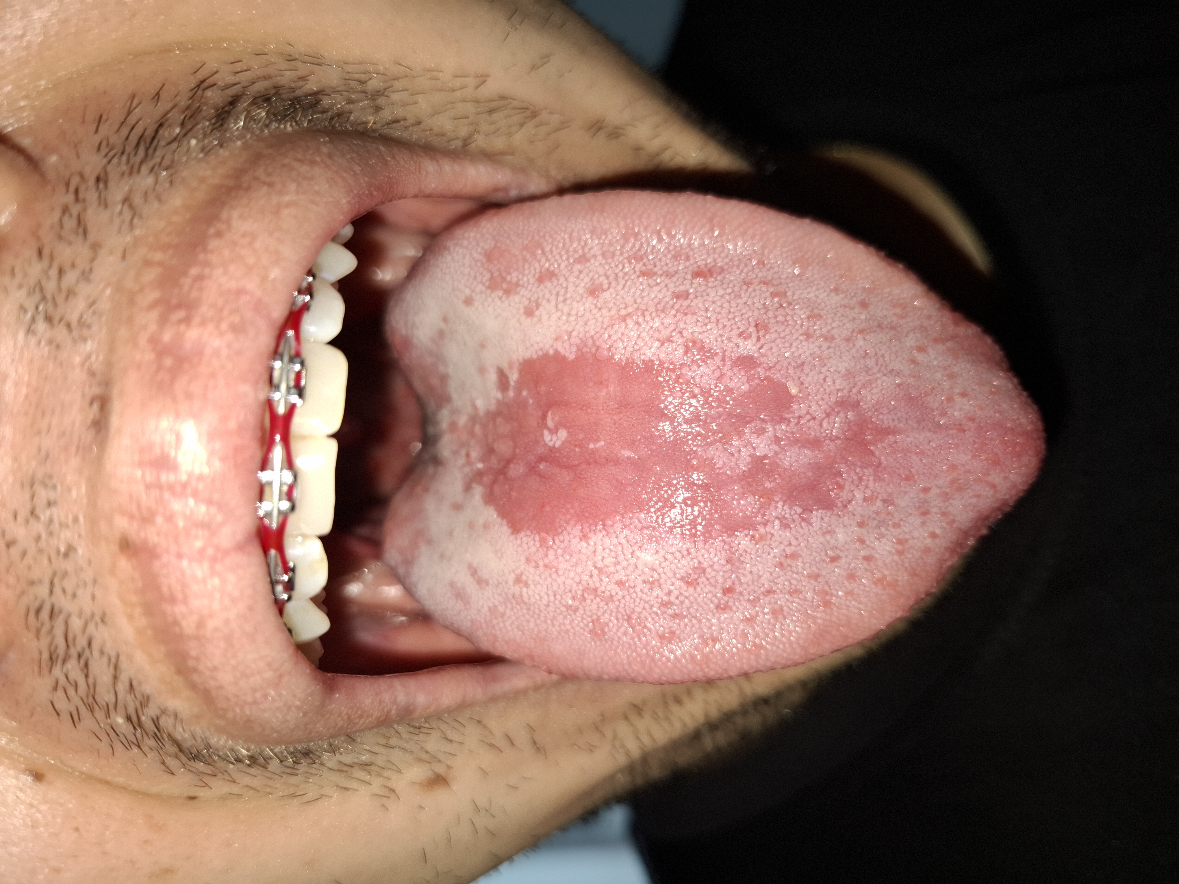 19 สิงหาคม 2567 17:19:26 #1 ลิ้นผมเป็นแบบในรูปหลังกินสัปปะรดไปตอนวันที่ 1 สิงหา เป็นมานานประมาณ 2 สัปดาห์กว่า ตอนที่กินอาจมีจังหวะที่สัปปะรดเสียดสีกับลิ้น หลังจากผ่านมา ก็มีเจ็บบ้าง มีเลือดออกบริเวณตุ่มบ้าง มีตุ่มตามภาพ ทั้งในลิ้นลึกๆ และที่อื่น และลิ้นมีสีขาวๆตามภาพ และมีสีแดงตรงกลาง