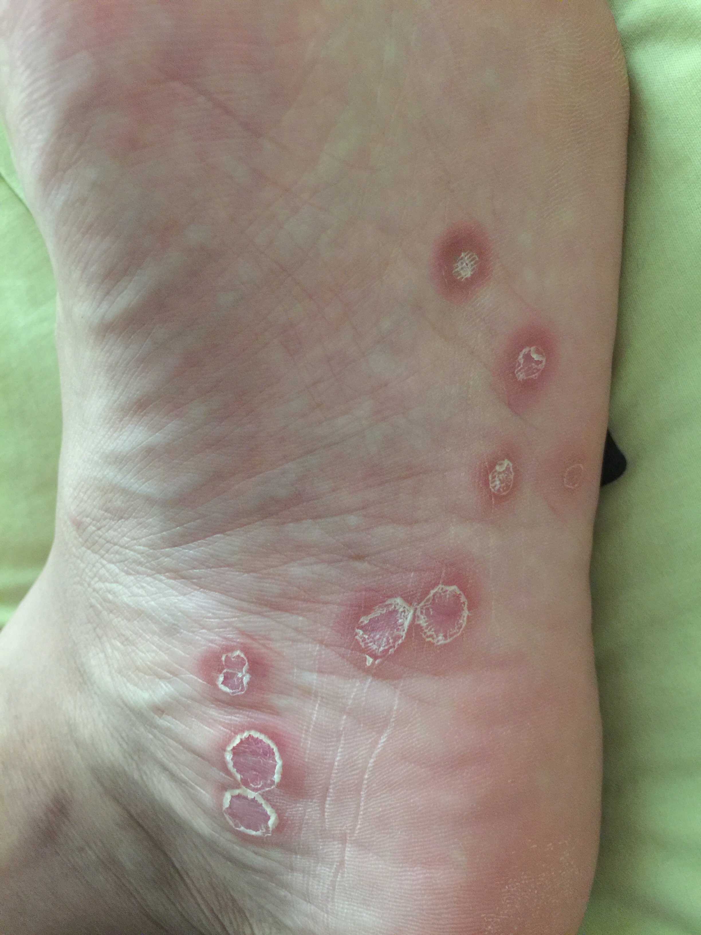 4 พฤษภาคม 2558 16:52:15 #1 ตอนแรกเป็นจุดสีสีชมพูเข้มชัดกว่าสีผิวบริเวณอื่น 11จุดครับ ไม่มีอาการคัน เจ็บใดๆ ดูเหมือนโดนมดกัด คิดว่าน่าจะหาย ผ่านมา20วัน สังเกตุเห็นมีมีอาการลอกขอบๆครับ เนื้อตรงกลางนุ่มๆอ่อนๆ สีชมพูบุ๋มเล็กน้อย และปัจจุบันก็ลอกเยอะ โดยเฉพาะขอบๆ ยังไม่มีอาการคันเหมือนเดิมครับ ตอนแรกคิดว่าเป็นซิฟิลิส จึงไปตรวจVDRL. แต่ไม่พบเชื้อครับ กลับพบHIV. เครียดหนักกว่าเดิมมาก จึงหาทางรักษาตนเองก่อนดีกว่า แต่ก็ยังไม่ทราบว่าตัวเองเป็นโรคอะไรที่เท้า จึงอยากขอคำแนะนำจากคุณหมอว่าผมน่าจะเป็นอะไร มีแนวทางปฏิบัตรหรือ รักษาเบื้องต้นอย่างไรได้บ้างครับ ขอบคุณครับ ปัจจุบันผ่านมาประมาณ45วัน ก้ยังไม่ดีขึ้น ผมกลัวจะเป็นโรคแทกซ้อน จึงต้องเช็คร่างกายตัวเองอีกเยอะเลยครับ ขอบคุนมากๆครับ http://haamor.com/media/images/webboardpics/76060-22007-1.jpg http://haamor.com/media/images/webboardpics/76060-22007-2.jpg |